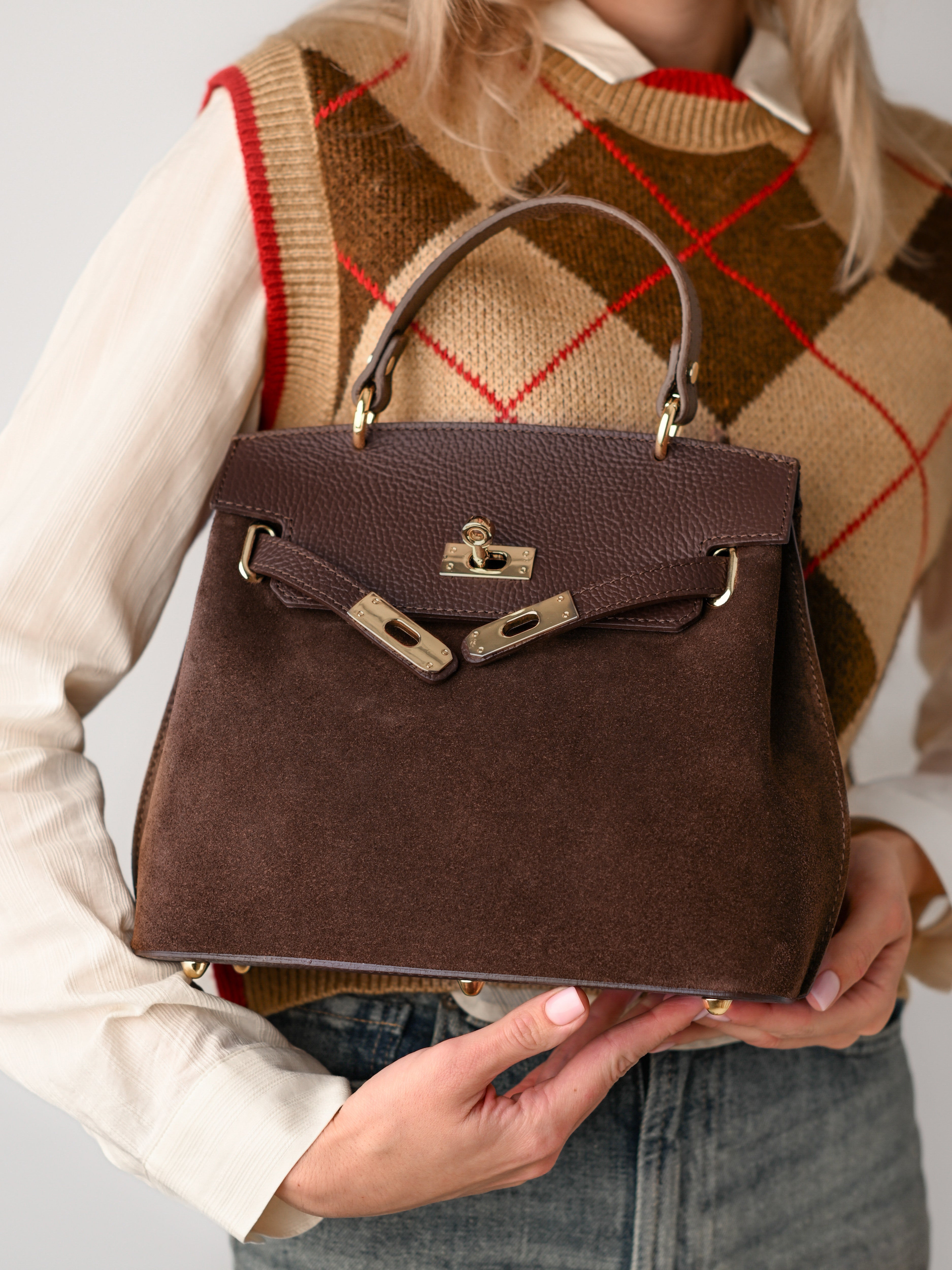 LINA MINI WELUR CZARNA CZEKOLADA